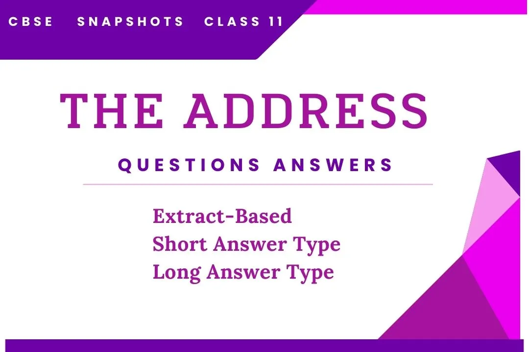 The Address Questions Answers Class 11 NCERT English Snapshot (2025–2026) are explained in simple, easy-to-understand language. These answers cover all important themes, values, and character insights from the chapter. Ideal for CBSE Class 11 students, these solutions help in revision, exam preparation, and gaining a deeper understanding of the story as per the latest syllabus and marking scheme. Perfect resource for quick learning and scoring better in English exams.